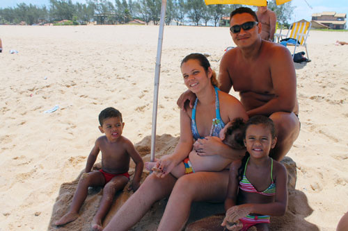 - Estou em Férias e escolhi, junto da minha família, vir para a praia campista para passar minhas férias na casa do meu sogro. Esta é a segunda vez que venho para cá e descobri que é um lugar ótimo, inclusive para morar – destaca a niteroiense, que estava acompanhada do marido Heitor Feitosa, 35, e dos três filhos: Arthur, de seis meses; Enzo, de dois anos e Ana Beatriz, de cinco.