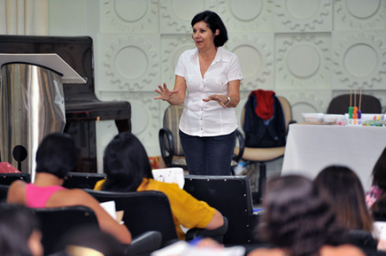 O Encontro Pedagógico 2013, promovido pela Secretaria Municipal de Educação, recebeu nesta terça-feira (5) professores do 2º ano do ensino fundamental, no Instituto Federal Fluminense (IFF), numa palestra de capacitação com a coordenadora setorial do 1º segmento do ensino fundamental, Adélia Pedra, e Maridelma Pourbaix, uma das coordenadoras de Matemática da equipe da Formação Continuada. Foram abordados diversos assuntos, entre eles, o ambiente alfabetizador, valores humanos e sugestões de atividades. O encontro acontece em diferentes pólos e tem como objetivo capacitar os profissionais da rede municipal para o início do ano letivo.