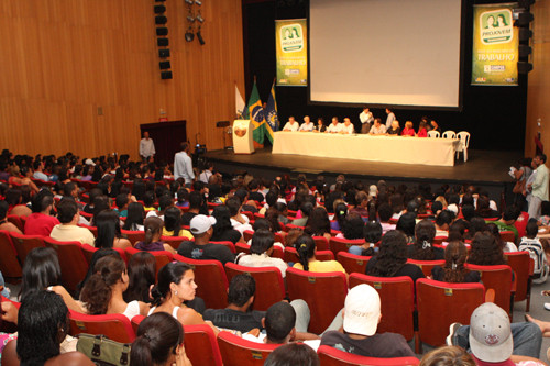 Mais de mil jovens, candidatos selecionados para os cursos do Projovem Trabalhador, lotaram o Teatro Municipal Trianon, na noite desta segunda-feira (24), na aula inaugural, presidida pela Prefeita Rosinha Garotinho. O programa, que oferece 1.500 vagas em cursos de capacitação, com duração de seis meses, para cidadãos com idade entre 18 e 29 anos, que estão desempregados, vai possibilitar a inserção de, pelo menos, 30% dos alunos que apresentarem os melhores desempenhos.