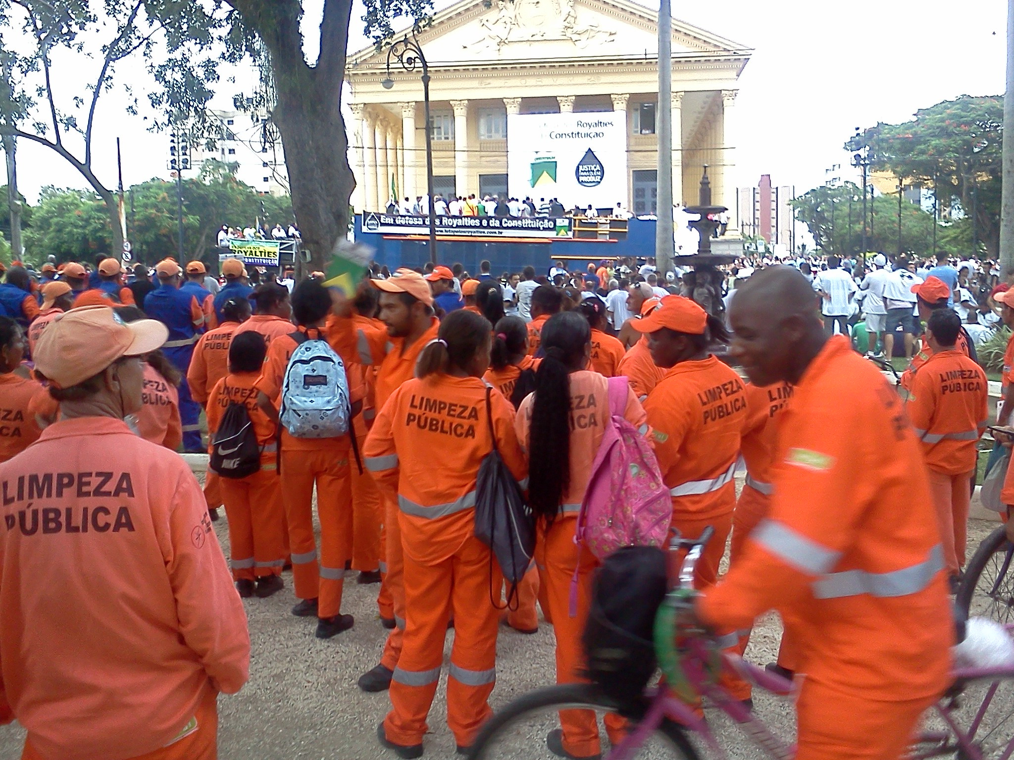 Funcionários da limpeza pública comparecem em ato público