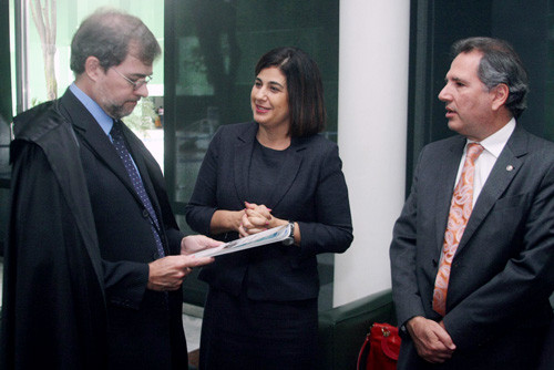 A Prefeita Rosinha Garotinho cumpre nesta quarta-feira (20), em Brasília, o segundo dia de agenda com ministros do Supremo Tribunal Federal (STF), na mobilização em defesa dos royalties. Após o encontro de terça com o Ministro Gilmar Mendes, hoje Rosinha, com o promotor Marcelo Lessa e o juiz Paulo Assed, representando a sociedade civil organizada, se reuniu com o Ministro José Antônio Dias Toffoli e apresentou dados do impacto da redistribuição dos royalties junto aos municípios fluminenses.