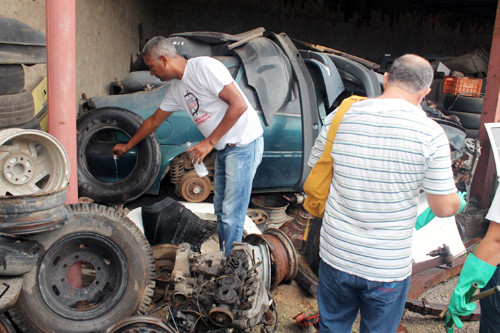 O secretário de Saúde, Geraldo Venâncio, apresentou o balanço do primeiro dia do mutirão específico para eliminação de focos da dengue em pneus, nesta quarta (3). “Foram visitados 30 ferros velhos e 18 borracharias. Em sete estabelecimentos, foram eliminados 14 criadouros do mosquito. Foram recolhidos 80 pneus, que foram levados para a Ceasa”, informou o secretário.
