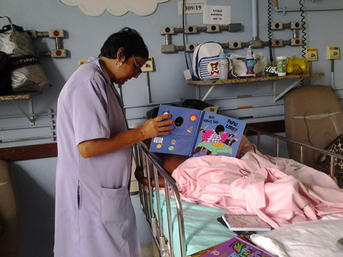 Para a incentivadora de leitura do projeto “Histórias que mudam a história da pediatria”, Cristiane Pires, esta é uma forma de levar alegria para as crianças internadas. “Atualmente, tenho 15 crianças internadas, mas isso pode mudar a qualquer momento em que elas vão tendo alta ou novas crianças cheguem”, disse Cristiane, destacando que é visível a alegria e melhora das crianças com a contação de histórias. O projeto acontece das 09 às 16h.