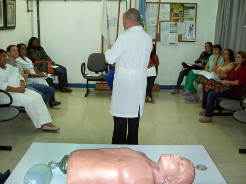 Na rotina de um hospital de emergência, o suporte à vida é fundamental para o pronto atendimento ao paciente e, visando treinar um número maior de profissionais a Fundação Municipal de Saúde (FMS), a Secretaria de Saúde e a Fundação Benedito Pereira Nunes estão desenvolvendo em regime de parceria uma série cursos de qualificação voltados para procedimentos e rotinas de trabalho ligadas à área da saúde. O treinamento de “Suporte básico de vida” foi promovido, nos dias 29 e 30 de abril, no Centro de Estudos do Hospital Ferreira Machado (HFM) através de módulo único de 8h, com bases teóricas e práticas.