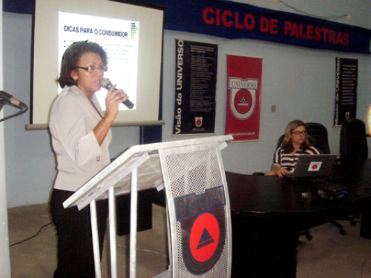 A Secretária Executiva do Procon/Campos, Rosangela Tavares, ministrou palestra na sexta-feira (28) para os alunos da Universidade Salgado de Oliveira (Universo), dentro do ciclo de palestras da II Feira de Negócios. Com o tema “Direito e Cidadania”, a secretária explicou a importância da criação do Código de Defesa do Consumidor, mostrou os direitos e deveres dos consumidores e esclareceu em quais situações o consumidor lesado deve procurar o órgão.