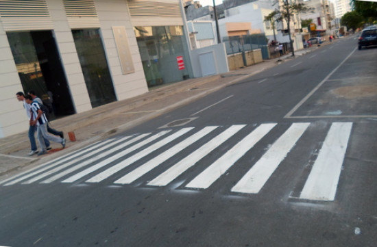 Além disso foram pintadas as faixas de pedestres, já que é grande a movimentação de estudantes e foi preciso determinar os locais de travessia.