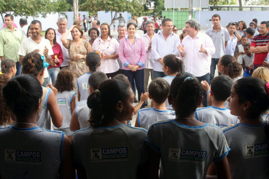 A Prefeita Rosinha Garotinho entregou à população nesta terça-feira (18), a reforma e ampliação da Escola Municipal Carlos Chagas, no Parque Jacarandá. A unidade ganhou mais três salas de aula, laboratório de informática, sala de leitura e banheiros masculino e feminino. O prédio antigo passou por uma pintura geral, além da construção de uma sala de professores. Rosinha Garotinho foi recepcionada pelo coral da escola, que faz parte do Projeto Mais Educação, do Ministério da Educação. Cerca de 390 alunos da Educação Infantil ao 9º ano e da Educação para Jovens e Adultos (EJA) estudam em três turnos da Carlos Chagas.