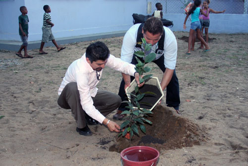 A prefeita Rosinha Garotinho plantou esta semana, no Jardim de Infância Municipalizado Alva Doralice Ribeiro de Castro, em Santa Cruz, a primeira muda de árvore frutífera, de um total de 100 mil que a Secretaria de Meio Ambiente vai espalhar pelas escolas da rede municipal de ensino. O projeto “Árvore na Escola” chegará a todas as unidades de ensino que tenham uma área livre para que o plantio possa ser feito.