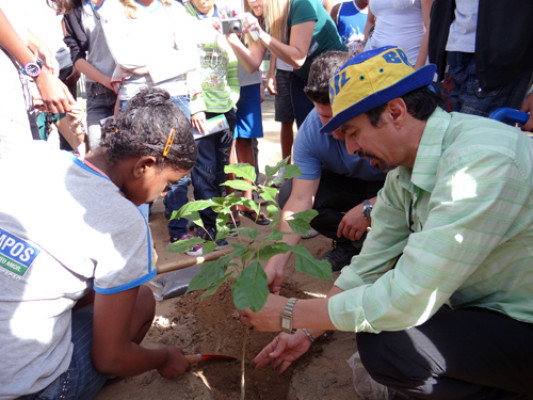 As Secretarias de Meio Ambiente e de Limpeza Pública, Praças e Jardins realizaram um trabalho de plantio de mudas de árvores e palestras, em parceria com a concessionária de energia Ampla, na Praça Nilo Peçanha, no Jardim São Benedito, nesta quarta-feira (26). Cerca de 30 alunos da Escola Municipal Professora Olga Linhares participaram da ação.