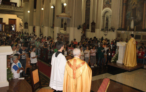 Quem foi até a Praça do Santíssimo Salvador na noite deste sábado (20) pôde ouvir o melhor do louvor e da adoração em vários idiomas. O cantor Eros Biondini, convidado especial da Fundação Cultural Jornalista Oswaldo Lima para encerrar a Semana Missionária, convidou os jovens peregrinos estrangeiros – Índia, Espanha, República do Congo, Alemanha, México - para subirem ao palco para cantarem louvores conhecidos em vários países. A principal praça da cidade ficou lotada de fiéis e de cerca de 300 peregrinos que estão em Campos na Semana Missionária, uma preparação para a Jornada Mundial da Juventude que começa na segunda-feira (22) no Rio de Janeiro com a presença do Papa Francisco.