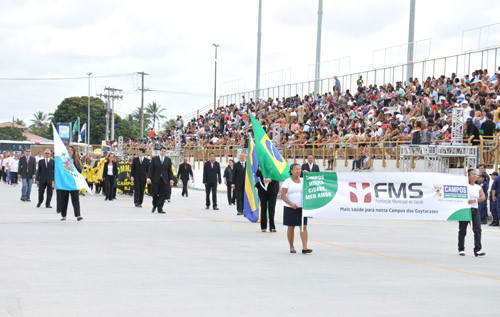 A Secretaria Municipal de Saúde apresentou os serviços e programas que oferece à população no Desfile Cívico da Independência, neste sábado, 7 de Setembro. O evento aconteceu no Centro de Eventos Populares Osório Peixoto (Cepop) e teve início às 8 horas. Contou com a participação de profissionais que atuam em diversas frentes de trabalho, como Centro de Referência e Tratamento da Criança e do Adolescente (CRTCA), programas, departamentos e Fundação Municipal de Saúde.