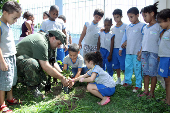 Alunos plantam mudas em comemoração ao Dia da Árvore