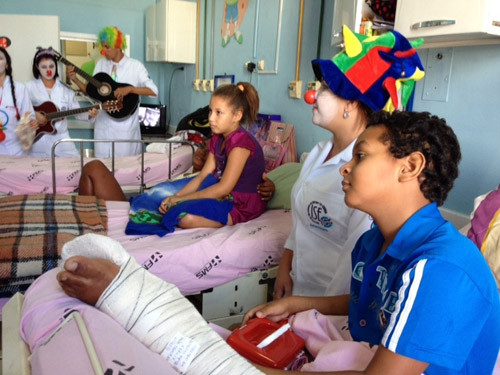 Vinte e dois alunos do curso de Enfermagem do ISECENSA percorreram as enfermarias da Pediatria do Hospital Ferreira Machado (HFM), na tarde desta sexta-feira (11), levando alegria através de canções, contação de histórias e distribuição de presentes. Eles integram o grupo HumanISE, criado em 2009 com a intenção de estreitar os laços entre pacientes e os futuros profissionais de Enfermagem.
