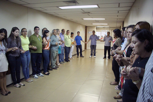 Na manhã desta sexta-feira (25) aconteceu no hall de entrada no Centro Administrativo José Alves de Azevedo (Cesec), sede da Prefeitura, culto ecumênico em comemoração ao Dia do Servidor, na próxima segunda-feira (28). O ato aconteceu antecipadamente devido ao dia ter sido decretado ponto facultativo nas repartições públicas municipais. A comemoração teve apoio da Fundação Cultural Jornalista Oswaldo Lima.