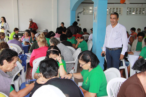 Os idosos foram recebidos com um café da manhã e depois, almoço. Na programação, organizada pela Secretaria Municipal dos Direitos do Idoso, hidroginástica, alongamento, jogos, música, poesia e show com o cantor de forró João Rogério, além de aferição da pressão e da glicose.