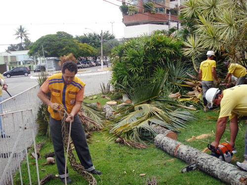 Em ação conjunta, as Secretarias de Defesa Civil e de Obras e Urbanismo promoveram esta semana, o corte de palmeira, coqueiros e pinheiro. As árvores estavam localizadas dentro de imóveis particulares nos Parques Vicente Dias, Tamandaré e Vera Cruz (Fundão) e ofereciam riscos não só aos moradores, como aos transeuntes.