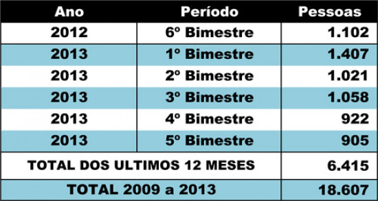 Entre 2009 e 2013 foram 18.607 empregos, e em um ano, 6.415 pessoas conseguiram emprego com carteira assinada.