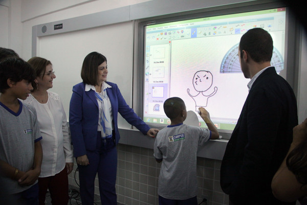 O lançamento de uma lousa digital interativa, que objetiva ser uma ferramenta de aprimoramento do ensino, aconteceu nesta quarta-feira (18), na Escola Modelo Professor Walter Siqueira, localizada no Parque Julião Nogueira. O lançamento foi feito pela prefeita Rosinha Garotinho. Ela informou esta implantação é experimental e, a partir dela, outras lousas serão implantadas nas demais escolas da rede municipal de ensino.