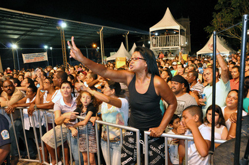 Canções que marcaram gerações, como “Ébano”, “Poxa”, Tô com saudade” entre outras, abrilhantaram o show da cantora Alcione. A apresentação abriu a programação da 304ª Festa de São Sebastião, que compõe o Verão da Família 2014, na noite deste domingo (19). Milhares de pessoas estiveram na praça principal do distrito para festejar e cantar com “A Marrom”. A presidente da Fundação Cultural Jornalista Oswaldo Lima, Patrícia Cordeiro, em nome da Prefeita Rosinha Garotinho cumprimentou a cantora antes do show.