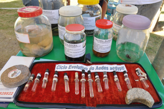Uma equipe do setor Informação, Educação e Comunicação (IEC) do Centro de Controle Zoonoses (CCZ) se fez presenta neste sábado (08) na praia do Farol de São Tomé, das 8h às 12h. A funcionária Carla Bichara expôs frascos com diversos animais peçonhentos, como a cobra cascavel, barbeiro, aranha viúva negra, além do ciclo evolutivo do mosquito Aedes Aegypti, transmissor da dengue. Recentemente, o órgão, em parceria com várias secretarias, realizou um mutirão de prevenção e combate à dengue no balneário campista.