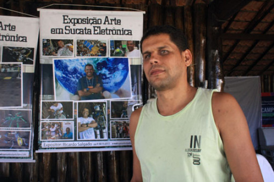 A exposição de arte em sucata eletrônica intitulada “Vem ver o que eu fiz com o seu celular”, do artista plástico Ricardo Salgado, continua neste sábado (08), no estande da Secretaria Municipal de Meio Ambiente, na orla da praia do Farol de São Tomé. Entre as produções expostas na mostra, estão miniaturas de helicópteros e aviões de variados modelos; animais, como escorpiões e, ainda, uma plataforma de petróleo e um robô que toca música e transmite orientações sobre a preservação do meio ambiente. Tudo confeccionado com celulares, peças de computador, joysticks, rádio e outros itens que iriam para o lixo se não fossem reaproveitados pelas mãos do artista.