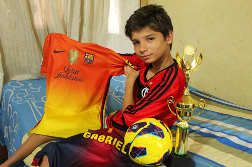 O estudante Gabriel Muniz, que cursa o 6º ano do Ensino Fundamental no Ciep Brizolão Professora Carmen Sylvia Carneiro, no Parque Eldorado, se prepara para torcer pelo Brasil na Copa do Mundo Fifa 2014, que acontecerá este ano no Brasil. O adolescente de 13 anos, que possui uma disfunção genética, é conhecido por sua grande superação, diante da capacidade de jogar futebol mesmo sem possuir os pés.