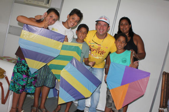 O secretário de Desenvolvimento Econômico e Turismo, Wainer Teixeira, distribuiu pipas para as crianças neste sábado (13) no primeiro dia do 4º Festival de Sorvetes, que está sendo realizado na Tenda Cultural da praia do Farol de São Tomé. Trata-se do 3o Festival de Pipas, que faz parte da programação do Verão da Família 2014. Mais pipas serão distribuídas neste domingo (09), das 16h às 22h. Os pais recebem uma cartilha de conscientização, com informações necessárias de como soltar pipas de forma correta.