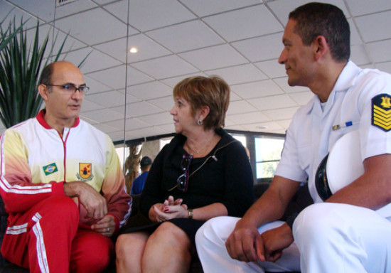 Na tarde desta quinta-feira (8), representantes da Banda Sinfônica do Corpo de Fuzileiros Navais visitaram o Teatro Municipal Trianon. Eles foram conhecer a estrutura do teatro e acertar detalhes do concerto, que será realizado no próximo dia 22, dentro da programação comemorativa pelos 12 anos do Trianon. O capitão de Fragata, André Luiz Rodrigues do Nascimento, e o primeiro sargento, Sena, foram recebidos pela presidente da Fundação Trianon, Auxiliadora Freitas.