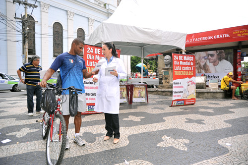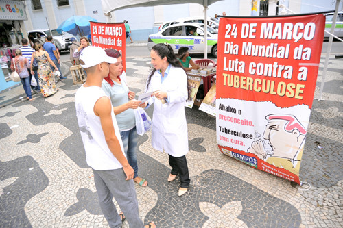 Centenas de pessoas foram orientadas quanto aos sintomas, características, tratamento e diagnóstico da tuberculose, na Praça São Salvador, nesta segunda-feira (24). Elas participaram das ações do Dia Mundial da Luta contra a Tuberculose, lembrado em Campos pelo Programa Municipal de Controle da Tuberculose (PCT).