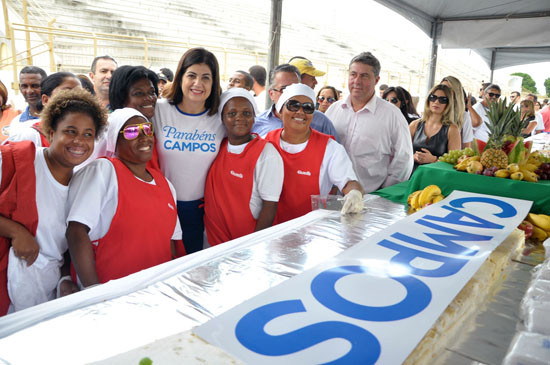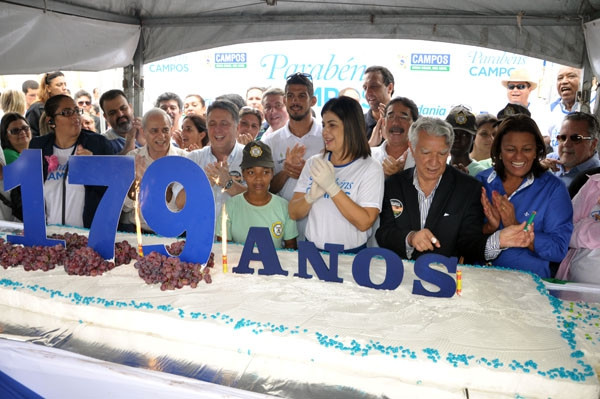 A prefeitura de Campos preparou um bolo de 179 metros, um metro para cada ano do aniversário, que foi cortado pela prefeita Rosinha. A primeira fatia homenageou as crianças, sendo entregue à guarda mirim Silva Thomaz de Melo, de 17 anos, que lembrou a importância das realizações para a prefeitura para este público, nas áreas de saúde, de educação e de esportes.