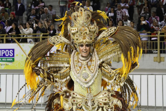 A fantasia utilizada por Nelcimar foi composta por muitos apliques nas cores amarelo e dourado, além de plumas nas mesmas tonalidades e uma espada dourado-ouro, que simboliza a luta de gladiadores.