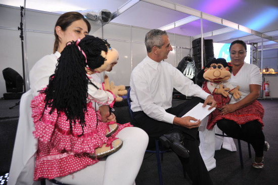 O espetáculo de fantoches foi apresentado pelo grupo do Departamento de Literatura da Fundação Cultural Jornalista Oswaldo Lima (FCJOL), composto pelos atores Márcia Terra, Leila Cabral e Edeilson Fernandes.