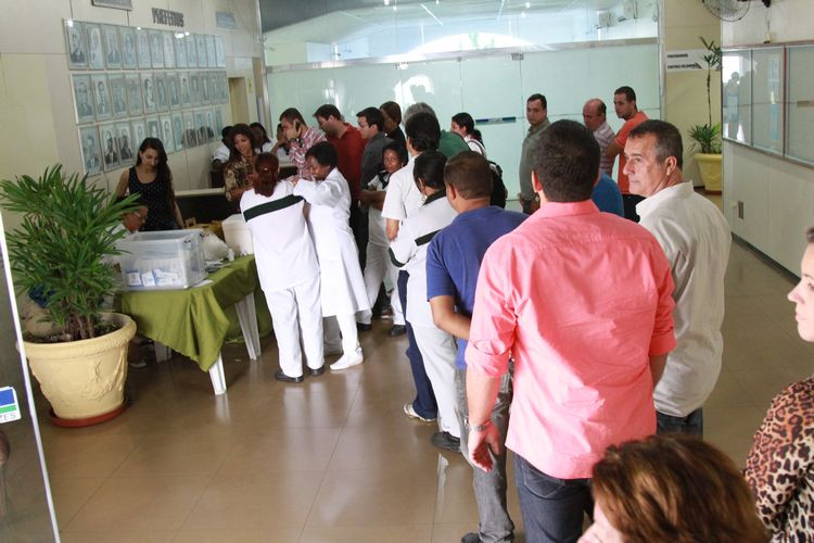 A Secretaria Municipal de Saúde prossegue vacinando acamados, profissionais de saúde e presos contra a gripe, em ação itinerante. A medida visa garantir que esses grupos populacionais também participem da Campanha Nacional de Vacinação contra a Gripe 2014. Nesta quarta-feira (21), foram vacinados os servidores públicos municipais na sede da Prefeitura.