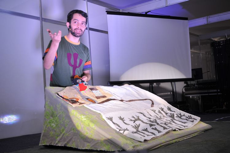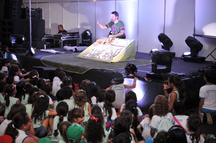 O grupo "Os Tapetes Contadores de Histórias" apresentou o espetáculo infantil "Palavras Andantes", durante a manhã e durante a tarde desta sexta-feira (23), na 8ª Bienal do Livro de Campos. Os artistas reúnem contação de histórias, que são especificamente contos da tradição oral e da literatura, e artes visuais, por meio de tapetes e itens coloridos que formam os cenários, personagens e ações dos contos.