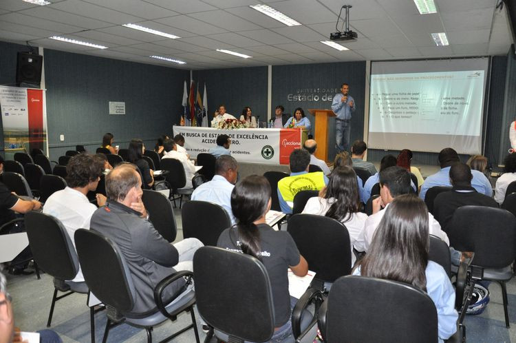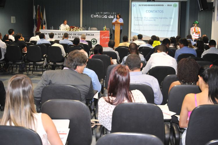 Em parceria com a empresa espanhola Acciona, que executa diversas obras no Porto do Açu, a Prefeitura, através da Secretaria de Petróleo, Energias Alternativas e Inovação Tecnológica, com apoio da Universidade Estácio de Sá, realizou nesta segunda-feira (30), no auditório da universidade, o I Seminário Norte Noroeste Fluminense de Segurança e Saúde Ocupacional. Capacitação profissional e zelo pela integridade física dos trabalhadores que ingressam em empresas de grande porte que se instalam na região foram destacados pelo secretário Marcelo Neves, que esteve na mesa de palestrantes, ao lado de José Eduardo Oliveira Tostes, técnico da Acciona.