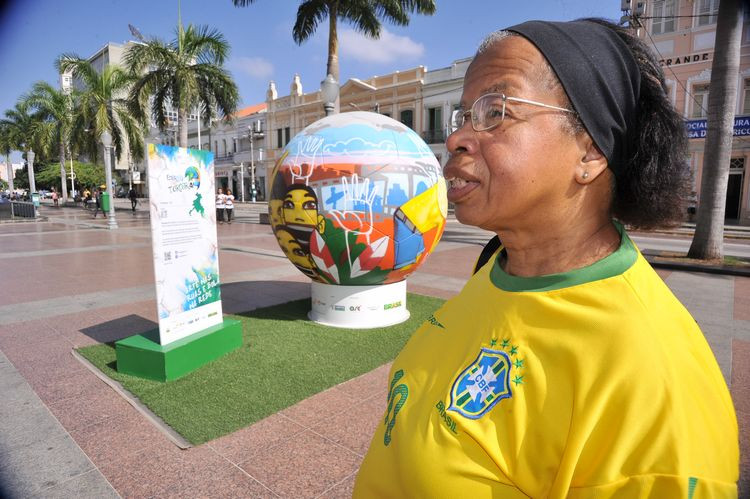 A aposentada, Sônia Maria, 57, já está em ritmo de jogo, com sua fiel camisa da Seleção Brasileira. Ela comentou que sempre que passa pela local pára e olha a bola gigante. “Estou adorando, minha família também já veio conferir a bola, é muito bonita e simboliza nosso país”, finalizou Sônia.