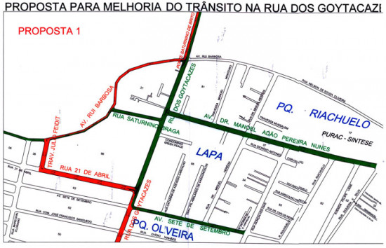 Se o motorista quiser voltar para a Rua dos Goitacazes, tem que fazer a conversão à esquerda na Rua Júlio Feidit (entre banco Itaú e a delegacia da Receita Federal), na Lapa; pegar a Rua 21 de Abril à esquerda novamente e entrar à direita na Rua dos Goitacazes. Neste cruzamento, os motoristas poderão entrar tanto à direito quanto à esquerda.