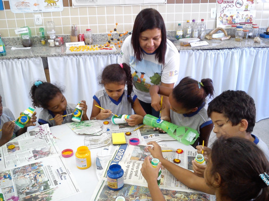 — Nessa temática, os alunos desenvolveram atividades como confecção de maquetes e brinquedos, murais e cartazes, enfeites e objetos utilizando material reciclável, com ênfase na preservação ambiental — explica.