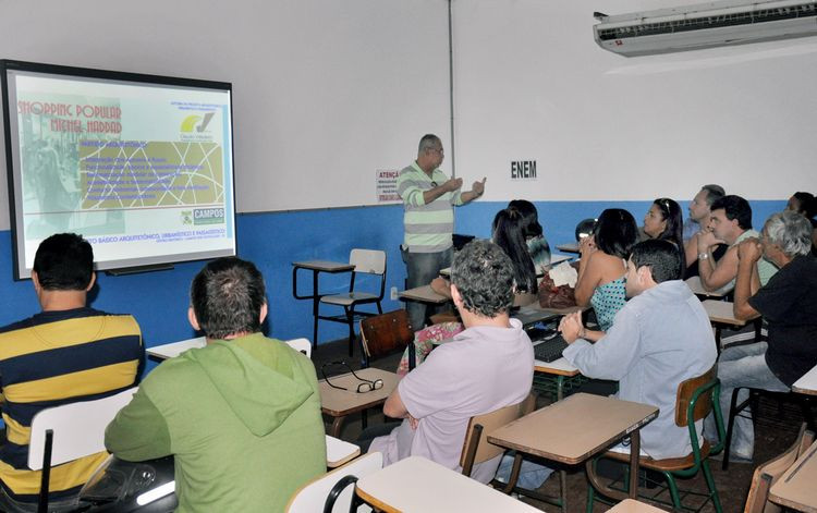 A Prefeitura de Campos realizou na noite desta quinta-feira (21) reunião com permissionários do Shopping Popular Michel Haddad, para apresentar pela primeira vez, o anteprojeto do novo shopping e receber sugestões. A apresentação do projeto, com a perspectiva virtual em 3D em cores, mostra como ficará o prédio de dois pavimentos, que abrigará o shopping popular, e impressionou os permissionários. A apresentação foi feita pelo próprio autor do projeto, o arquiteto Cláudio Valadares.