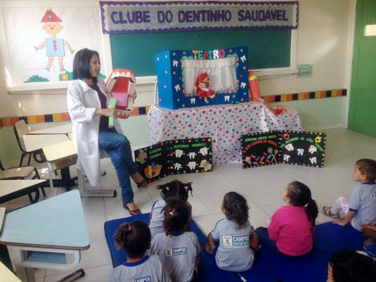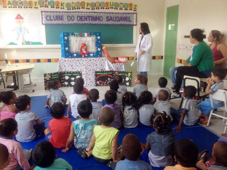 O Programa Dentinho Saudável atendeu nesta quarta-feira (27), cerca de 180 alunos durante os períodos da manhã e tarde na Creche Sérgio Lilico, no Parque Cidade Luz. Foram realizados trabalhos lúdicos com as crianças de 3 a 4 anos, além de levantamento para monitoramento de cáries e escovação assistida. Uma equipe composta de seis dentistas e um Técnico em Saúde Bucal (TSB) esteve no local.