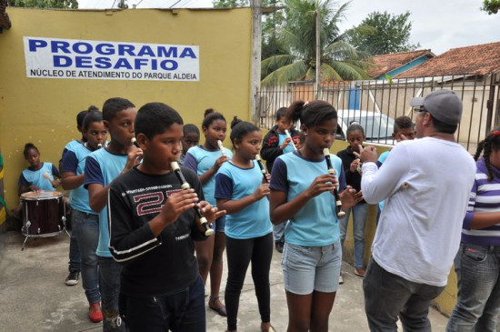 O ensaio do Coral de Vozes e Flautas Doces, desenvolvido pelo Programa Desafio, da Fundação Municipal da Infância e Juventude, no Parque Aldeia, acontece todas às segundas, quartas e sextas-feiras, das 9 às 11h e das 14 às 16h, no Espaço Desafio. Com cerca de 40 alunos na faixa etária de 6 a 13 anos, as aulas ministradas pelo maestro Marcelo da Rosa são uma descoberta para os alunos que acabam percebendo o talento para a música e a flauta.