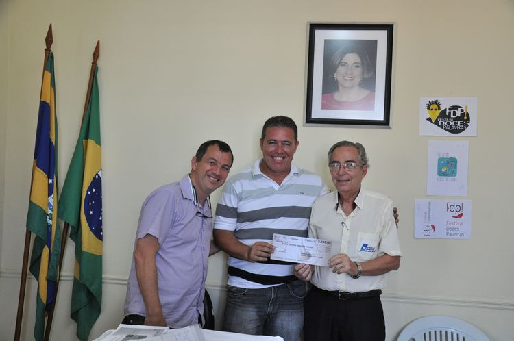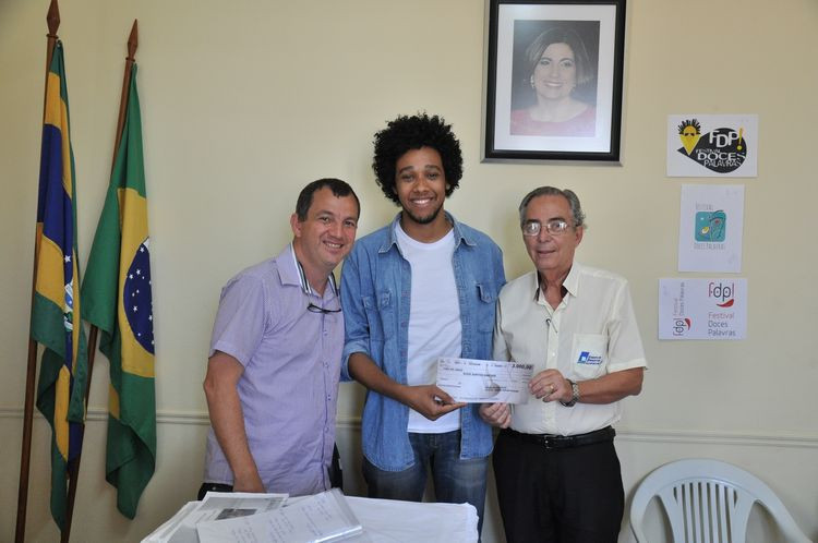 Os vencedores do concurso de logomarca do Festival Doces Palavras (FDP), que vai ser realizado no próximo ano, em Campos, receberam a premiação nesta segunda-feira (29), na Secretaria de Desenvolvimento Econômico e Turismo, com a participação do secretário Wainer Teixeira, e os representantes da Associação de Imprensa Campista, Vitor Menezes, e da Academia Campista de Letras e Arte, Hélio Coelho.