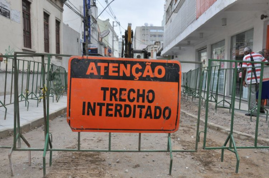 Rua 21 de Abril interditada para continuidade das obras do Centro Histórico