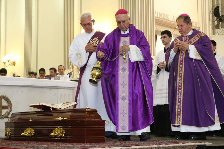 Também participaram da missa o Bispo Diocesano, Dom Roberto Francisco Ferrería Paz; bispo da Administração Apostólica Pessoal São João Maria Vianney, Dom Fernando Rifan; o Bispo Emérito Dom Roberto Guimarães, seminaristas, arcebispos, sacerdotes e ministros, além de toda comunidade católica. Em seguida, foram em procissão do altar à capela onde o bispo foi sepultado.