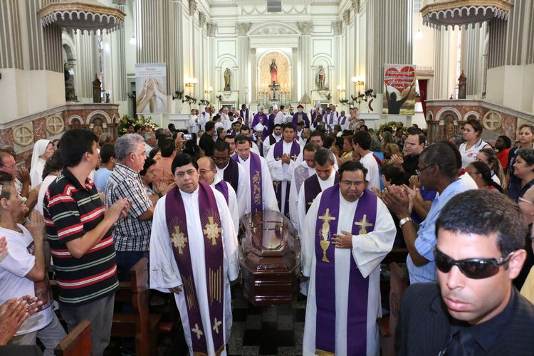 Um grande público compareceu nesta quinta-feira (16) à Basílica Menor de São Salvador, Catedral, para o último adeus ao Bispo Emérito de Campos, Dom João Corso, 86 anos. Ele faleceu na noite de quarta-feira (15) em São Paulo. A prefeita Rosinha Garotinho participou da missa de corpo presente, acompanhada pelas vereadoras Maria da Penha e Auxiliadora Freitas, além da secretária particular, Linda Mara Silva.