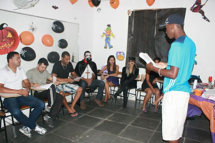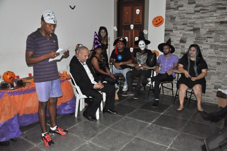 Alunos do curso de inglês da Casa da Juventude fizeram a Festa do Halloween nesta quinta-feira (30), mas a verdadeira intenção foi a de apresentar os trabalhos feitos pelos estudantes explicando a origem da data, comemorada em 31 de outubro no mundo. A proposta foi da professora de inglês, Indyara Viana Ribeiro, e os alunos aprovaram.