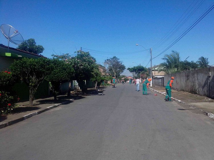 São realizados serviços de capina, roçada, varrição, pintura de postes e meios fios, desobstrução de bueiros, remoção de entulhos e remoção especial de inertes.