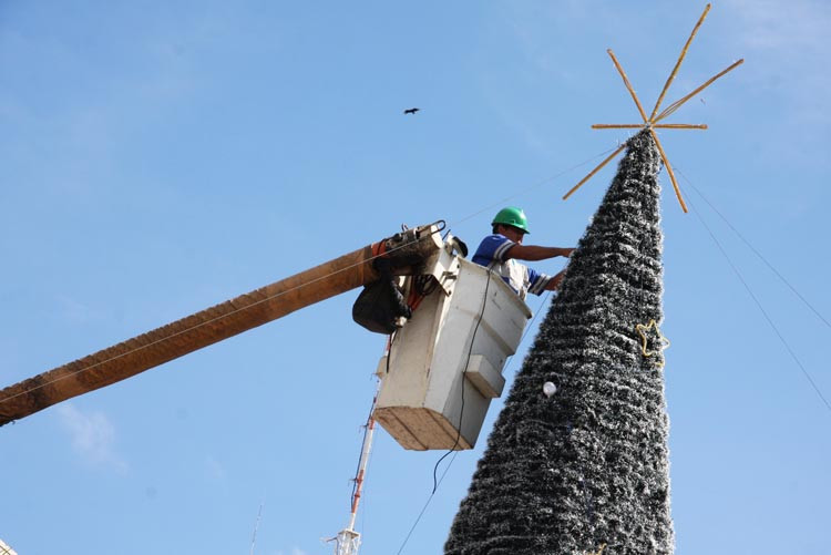 Árvore de Natal começa a ser montada na Praça São Salvador