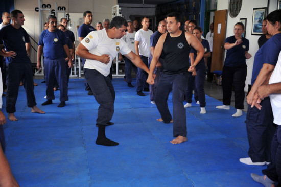 Os guardas municipais da primeira turma do Grupamento de Proteção Social da Guarda Civil Municipal (GCM) estão aprendendo nesta segunda-feira (15), técnicas de defesa pessoal. A aula está sendo ministrada pelo professor de artes marciais e guarda municipal, Gustavo Teixeira de Oliveira. Ele está treinando os alunos sobre como mobilizar um agressor e como se defender de uma agressão. Nesta terça-feira (16) continua a aula de defesa pessoal, mas com a utilização da tonfa.