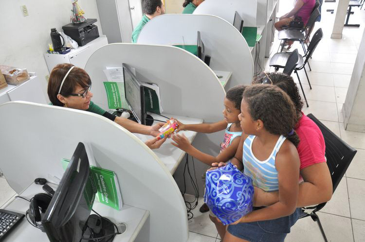 Em clima de Natal, funcionários do Bolsa Família presenteiam crianças